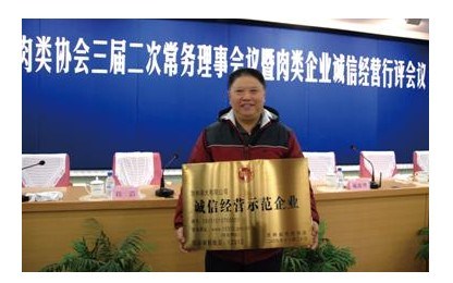 省肉類協(xié)會副會長陳玉和向“誠信經(jīng)營”示范企業(yè)頒發(fā)證書